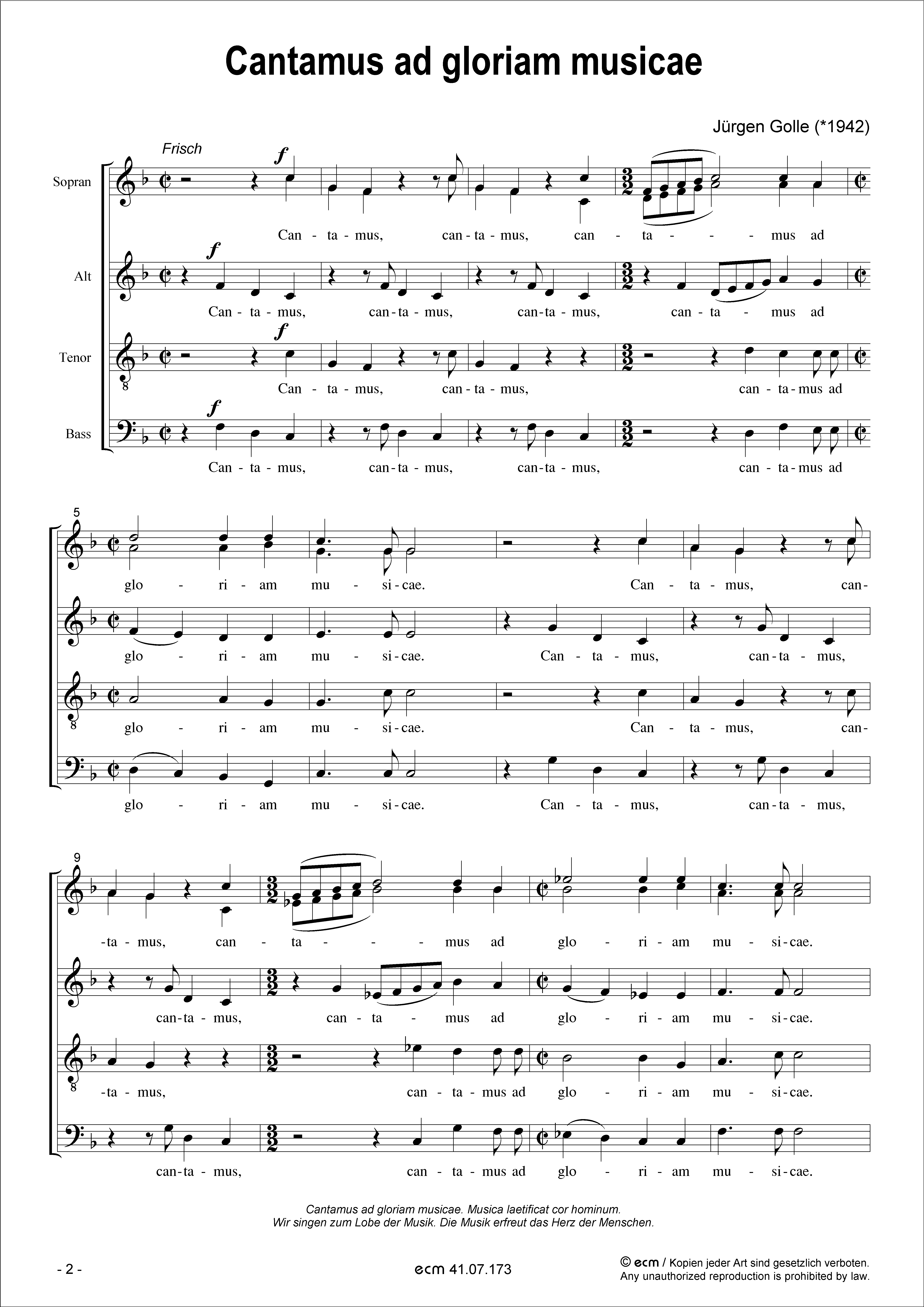 Dieses Werk ist folgenden Varianten erhältlich: Gemischter Chor a cappella • Gemischter Chor mit Klavier • Gemischter Chor mit Bläsern Frauenchor a cappella • Frauenchor mit Klavier • Frauenchor mit Bläsern Männerchor a cappella • Männerchor mit Klavier • Männerchor mit Bläsern Kinderchor a cappella • Kinderchor mit Klavier • Kinderchor mit Bläsern Besetzung: S.S.A.T.B.(B.) / Text: - Sprache: lateinisch / Tonart: gemischt / Dauer: 3:00 Min.