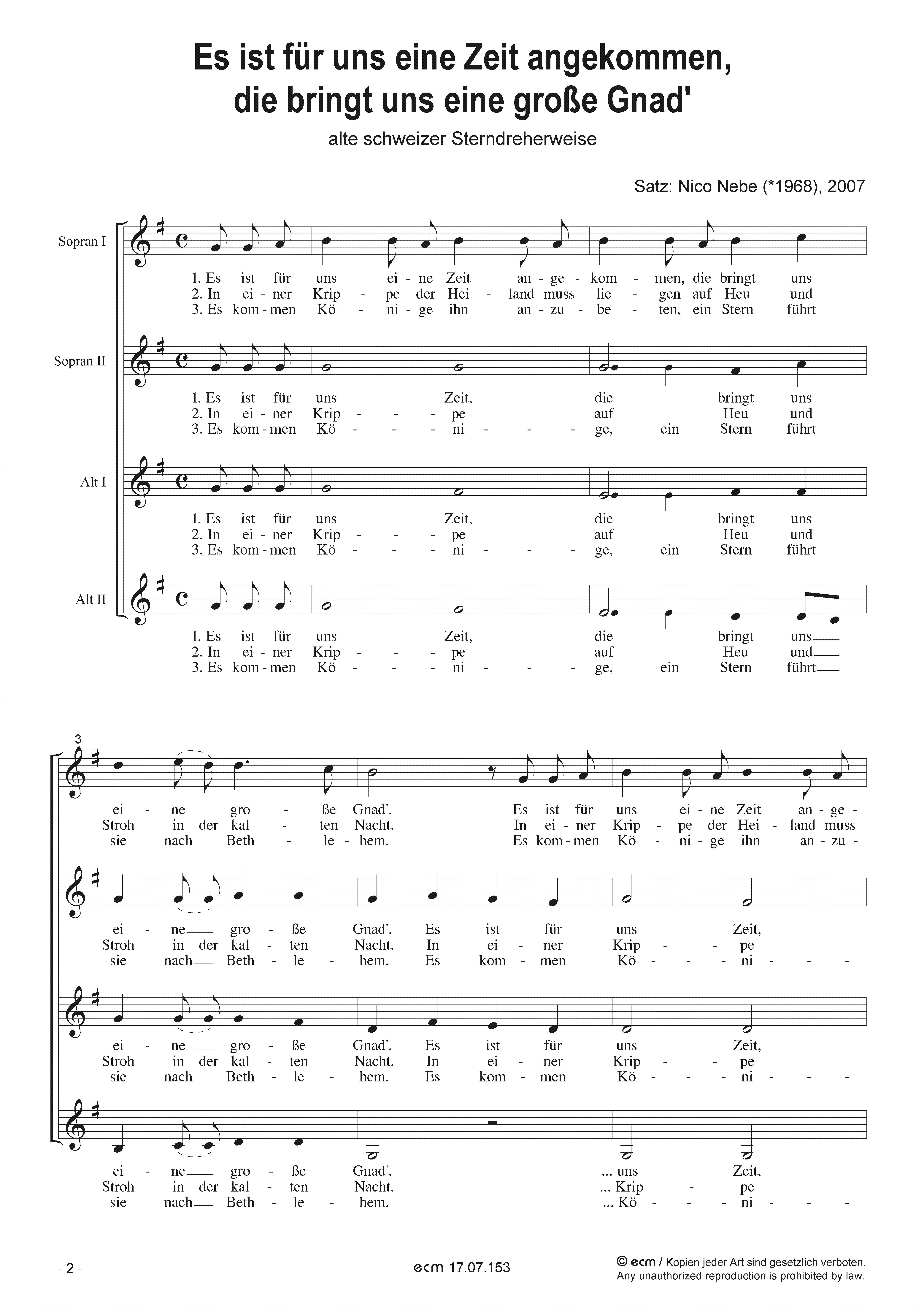 Schweizer Volkslied Besetzung: S.S.A.A. / Text: Schweizer Volkslied Sprache: deutsch / Tonart: G-Dur / Dauer: 1:50 Min. Dieser Satz ist folgenden Textvarianten erhältlich: Männerchor (weltlicher Text) • Männerchor (geistlicher Text) Frauenchor (weltlicher Text) • Frauenchor (geistlicher Text)
