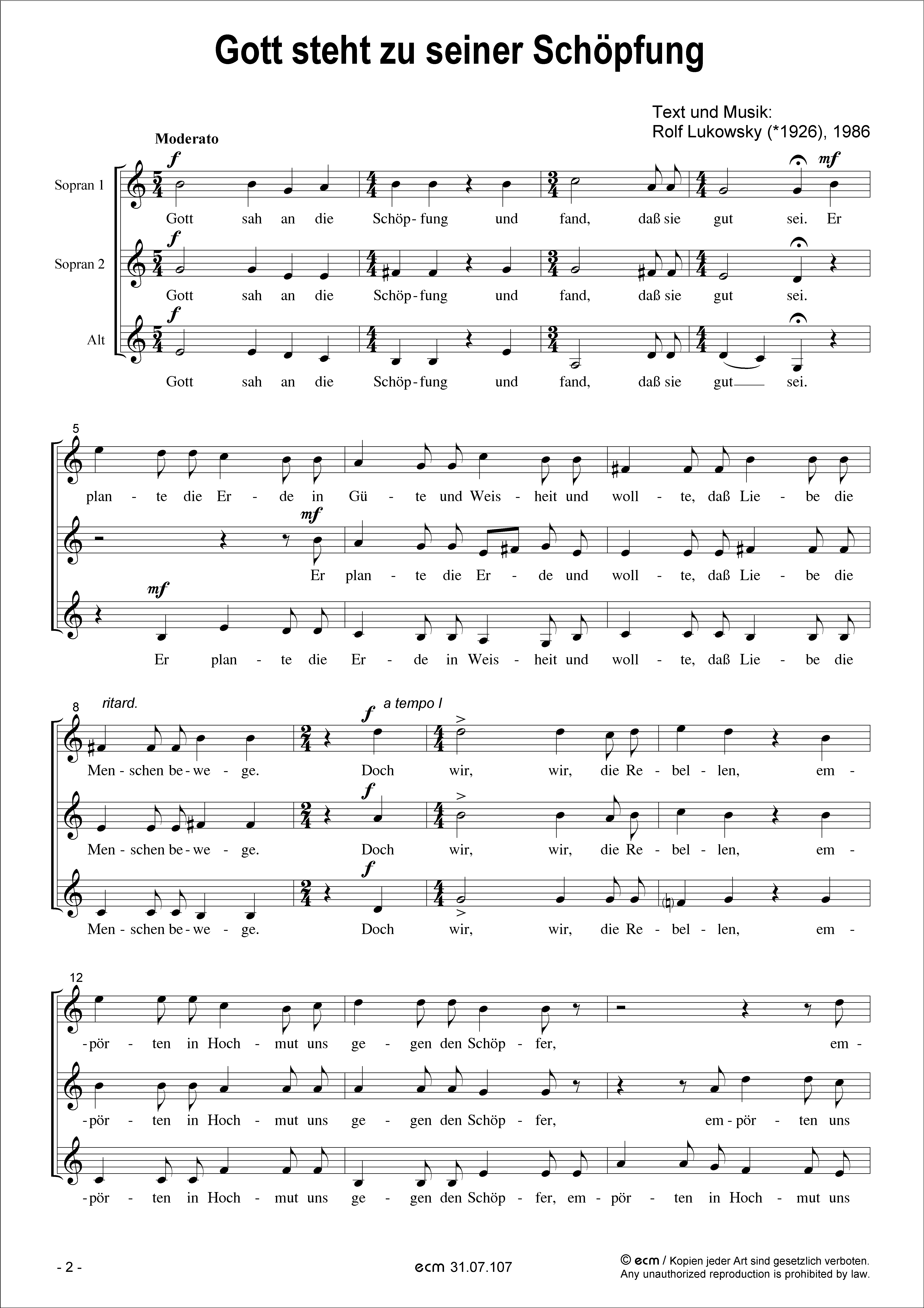 Besetzung: S.A.A. / Text: Rolf Lukowsky (*1926) Sprache: deutsch / Tonart: gemischt / Dauer: 1:30 Min.