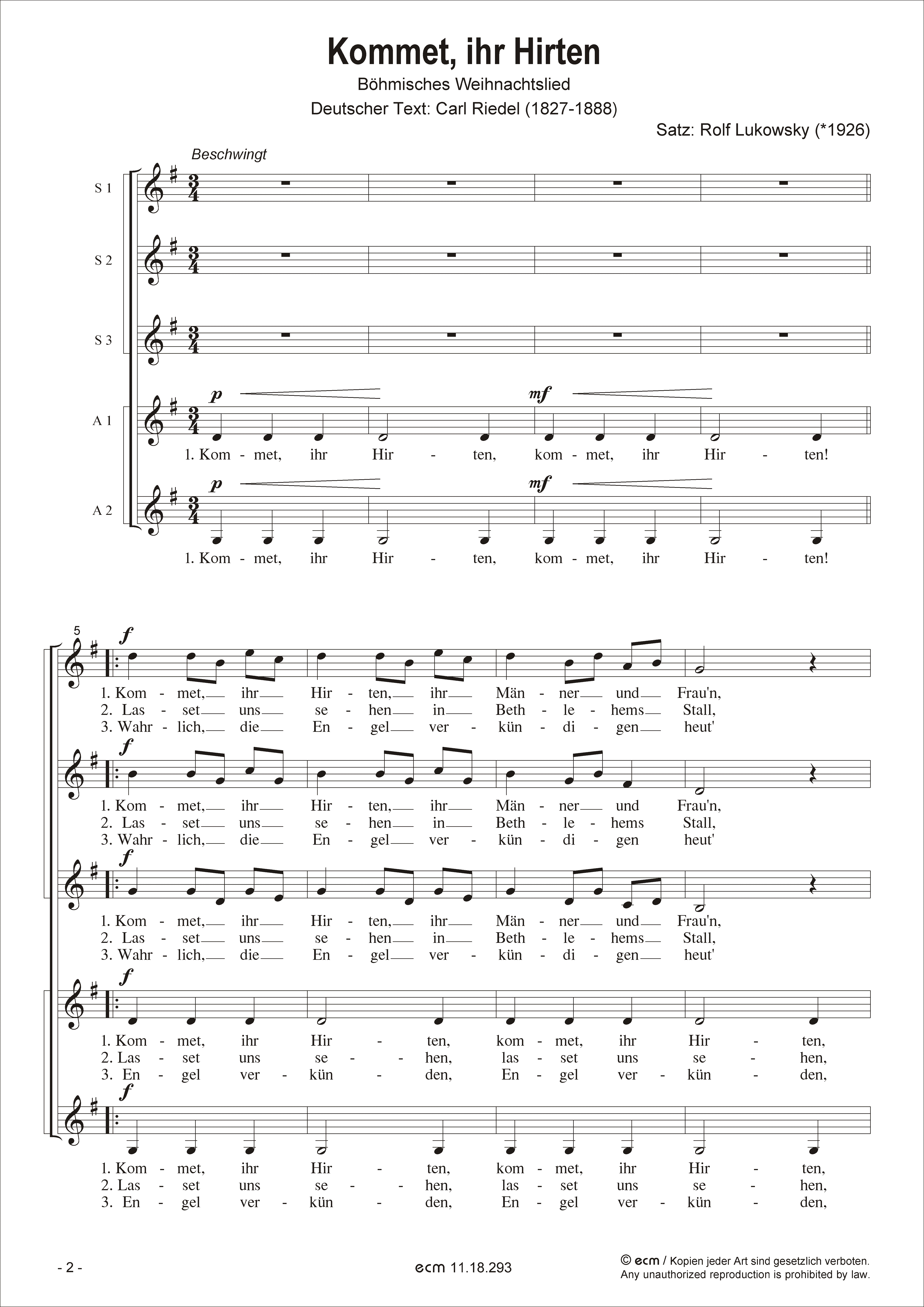 Bohemian Carol This opus is also available in the version for male choir. scoring: S.S.S.A.A. / German lyrics: Carl Riedel (1827-1888) language: German / key: G major / duration: 1:45 min.