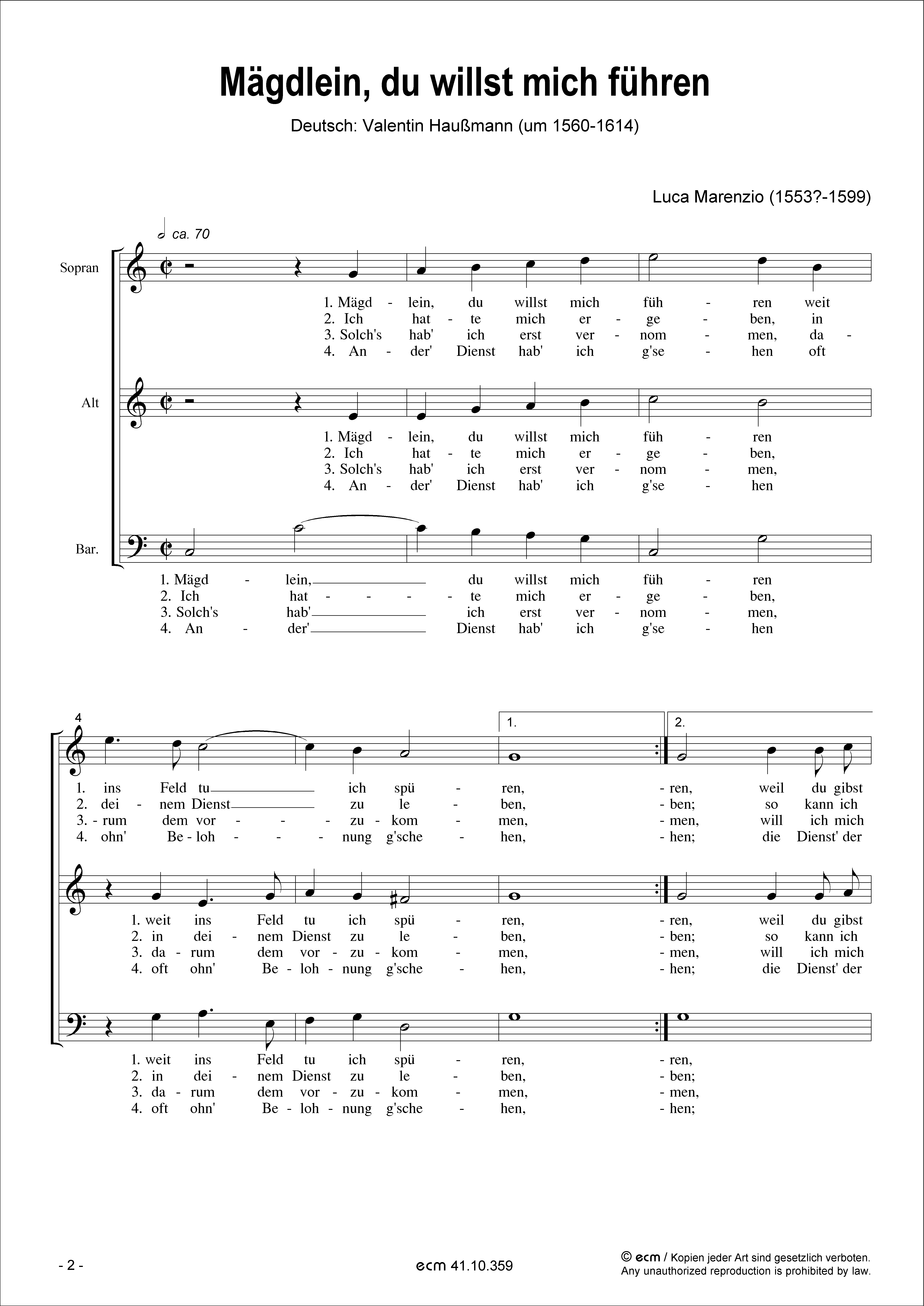 Besetzung: S.A.Bar. / Text: Valentin Haußmann (um 1560-1614) Sprache: deutsch / Tonart: C-Dur / Dauer: 3:20 Min.