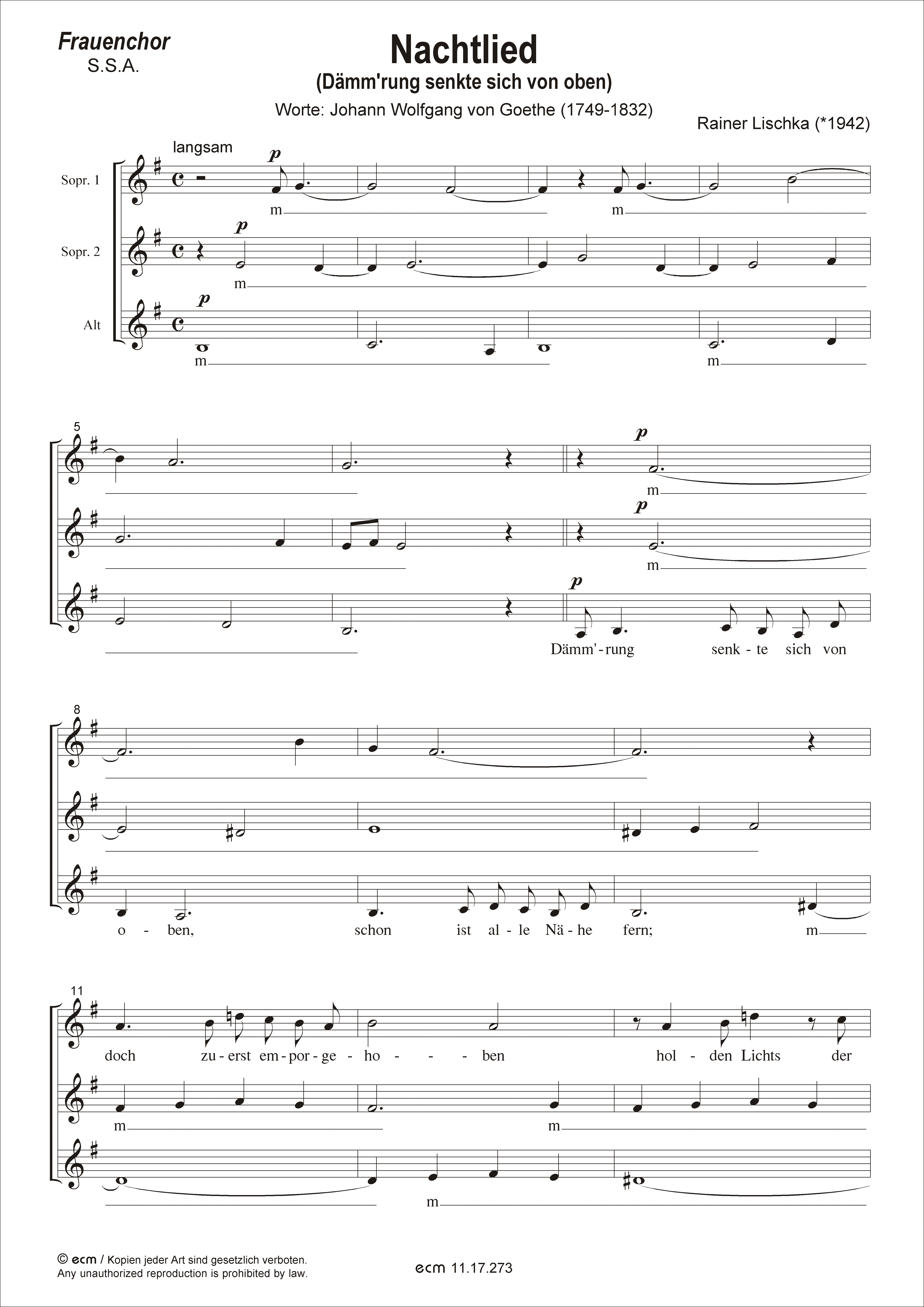 scoring: S.S.A. / lyrics: Johann Wolfgang von Goethe (1749-1832)