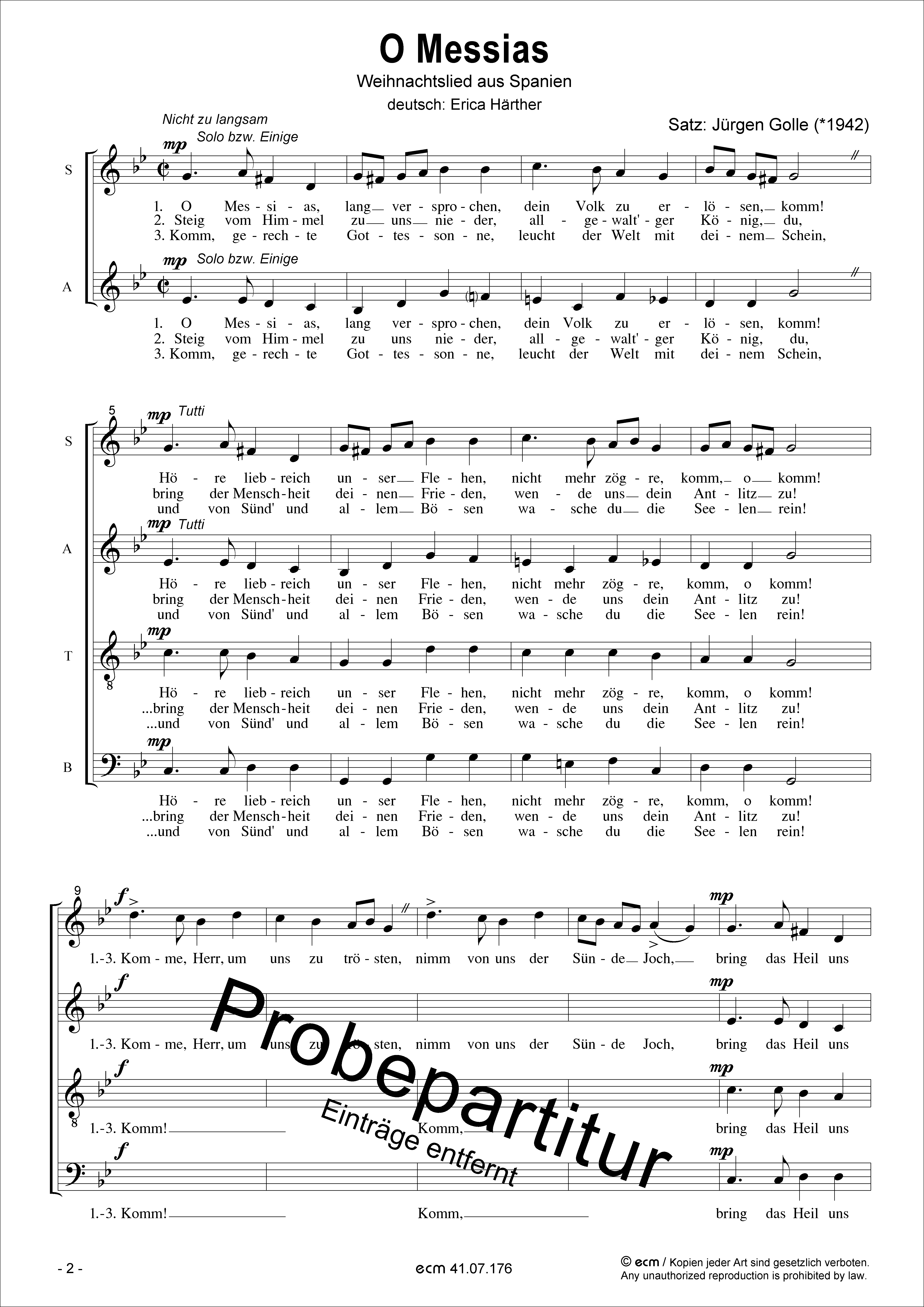 Dieses Werk ist auch in den Fassungen für Frauenchor und Männerchor erhältlich. Besetzung: S.A.T.B., S.-Solo / Text: Spanisches Volkslied / deu.: Erica Härther Sprache: deutsch / Tonart: g-Moll / Dauer: 2:40 Min.