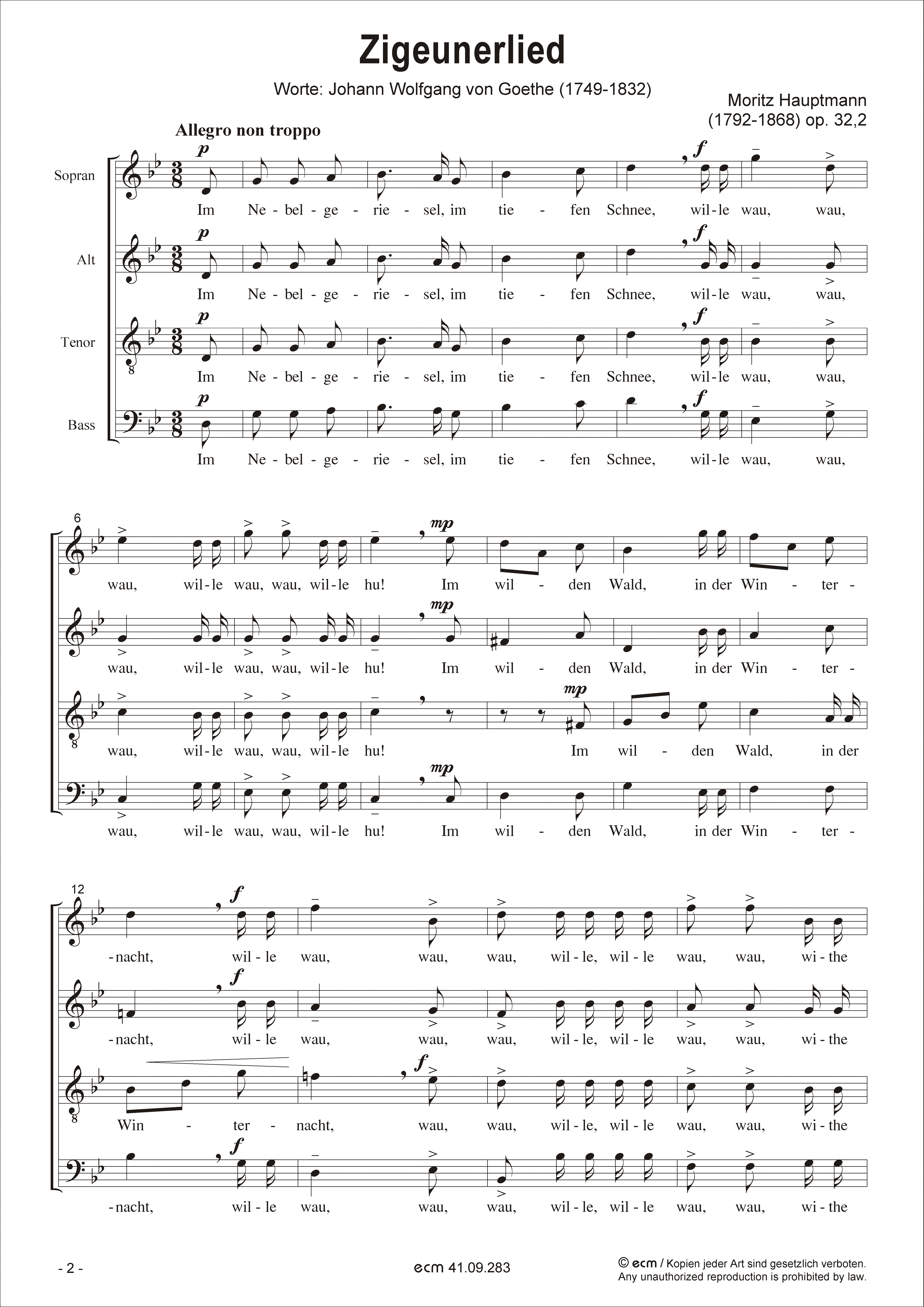 Besetzung: S.A.T.B. / Text: Johann Wolfgang von Goethe (1749-1832) Sprache: deutsch / Tonart: g-Moll / Dauer: 3:00 Min.